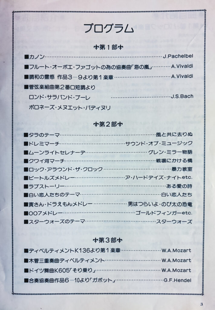 日本大学ギターオーケストラ第3回リサイタル(プログラム)